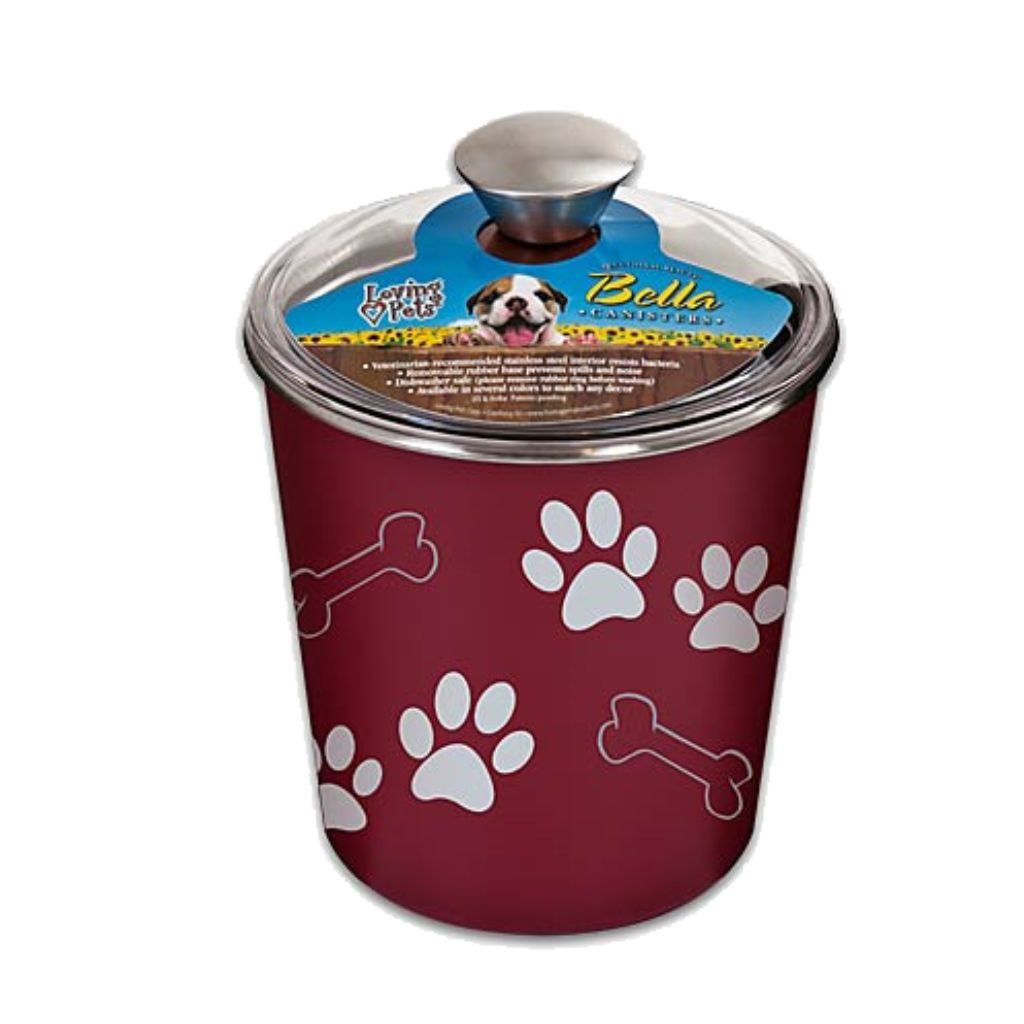 All Bella Canisters for dog snacks feature a removable rubber base to prevent noise, spills, and skids, plus a bacteria-resistant, vet-recommended stainless steel interior. Ideal for keeping treats fresh and secure, these canisters are perfect for maintaining a clean, quiet feeding area. Enhance your pet's snack time with Bella Canisters today!