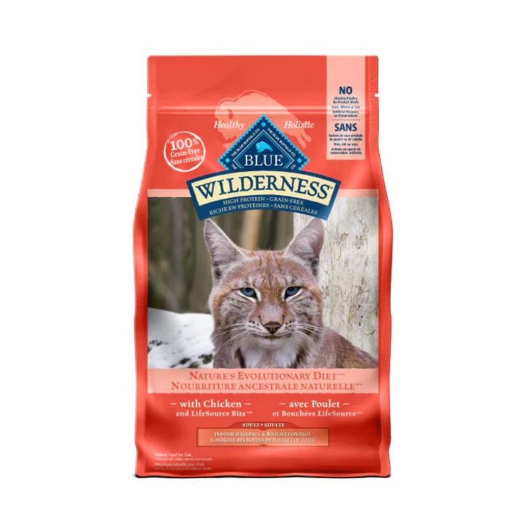 Inspired by the lynx's diet, BLUE Wilderness Indoor Hairball & Weight Control Chicken Recipe offers high-protein deboned chicken to help maintain an ideal weight. Balanced calories, sweet potatoes, and antioxidant-rich fruits and veggies support overall health. Grain-free, with no poultry by-products, artificial preservatives, corn, wheat, or soy.