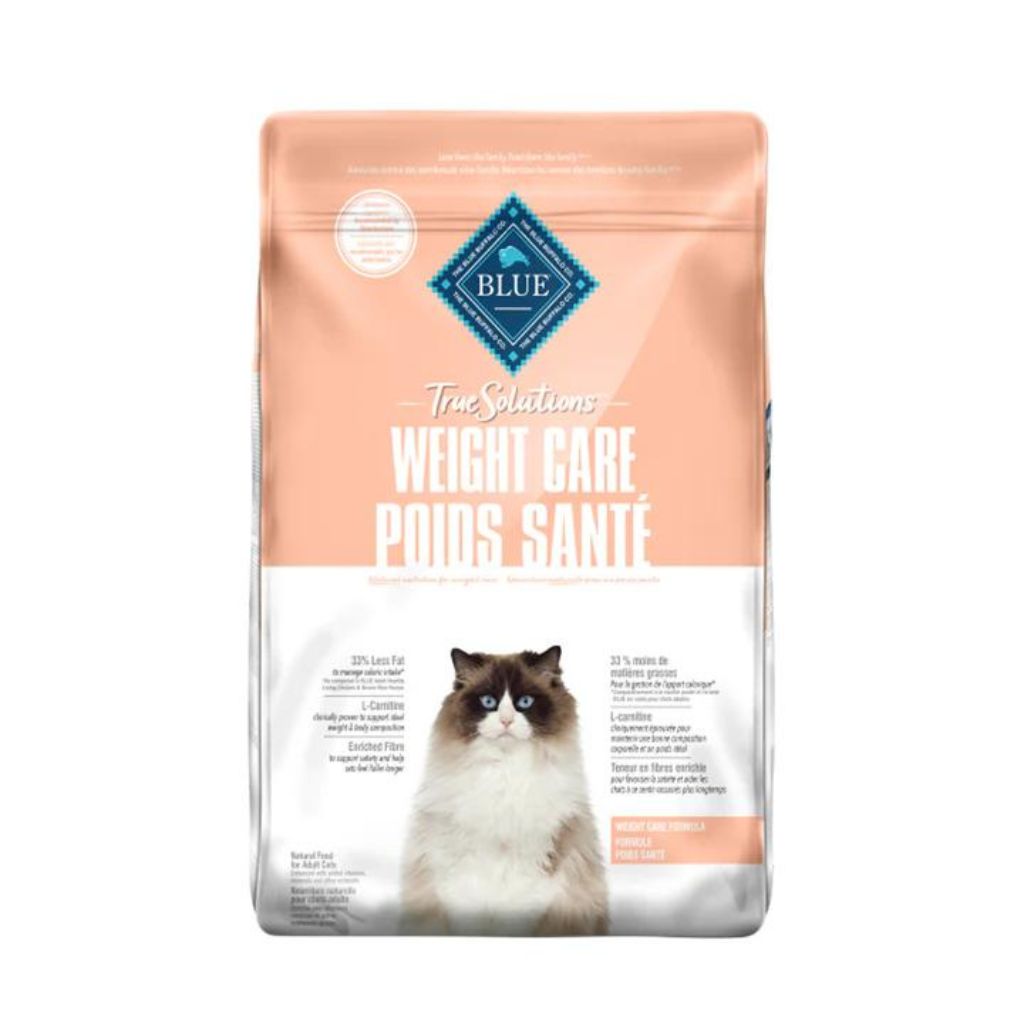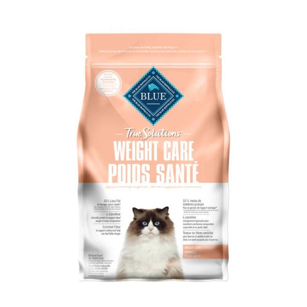 Help manage your cat's weight, naturally. Blue True Solutions Weight Care, formulated by veterinarians, starts with chicken and includes vitamins, minerals, and nutrients. With L-Carnitine to support ideal weight and added fiber to help cats feel full, it contains NO chicken by-product meals, artificial flavors, preservatives, corn, wheat, or soy.