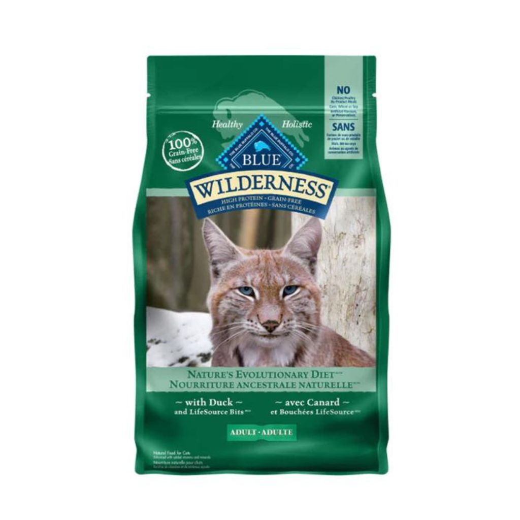 Inspired by the lynx's diet, BLUE Wilderness Duck Recipe is a protein-rich cat food with deboned duck as the main ingredient. It includes sweet potatoes for healthy carbs and cranberries, blueberries, and carrots for antioxidants. This grain-free formula contains no chicken or poultry by-products, artificial preservatives, corn, wheat, or soy, and offers a balanced alternative to raw diets.