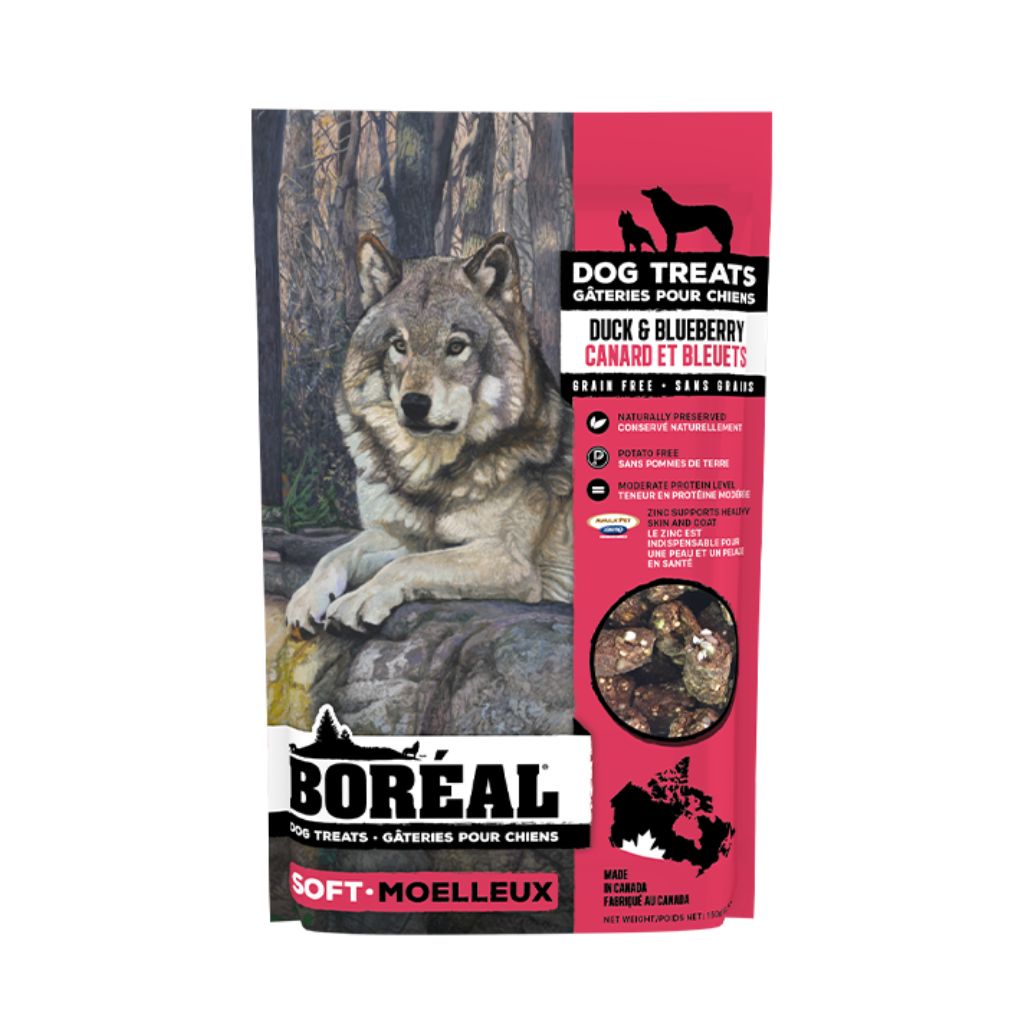 Boréal Duck & Blueberry Soft Dog Treats are delicious treats made with Canadian duck and blueberries. Enhanced with added zinc, these treats support healthy skin and coat for your furry friend. With low glycemic index ingredients, they contribute to your pet's overall health. Proudly made in Canada!