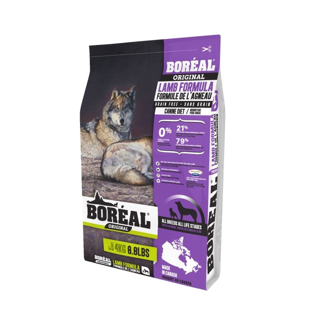 Boréal Original Lamb diet is a grain-free food featuring fresh lamb meat and lamb meal from Australia as a single-source novel protein. This everyday diet helps maintain a healthy weight and serves as a hypoallergenic option. It uses beans and peas instead of grains and includes beneficial herbs and fruits like blueberries and cranberries for added taste and antioxidants, enhancing overall health.
