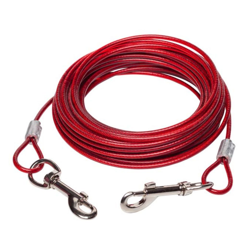 This tether cable with a spring is perfect for dogs weighing up to 250 pounds. Built with durability in mind, it features secure carabiners, allowing your dog to roam within a 10' to 30' perimeter safely. Ideal for giving your pet freedom while ensuring their safety.