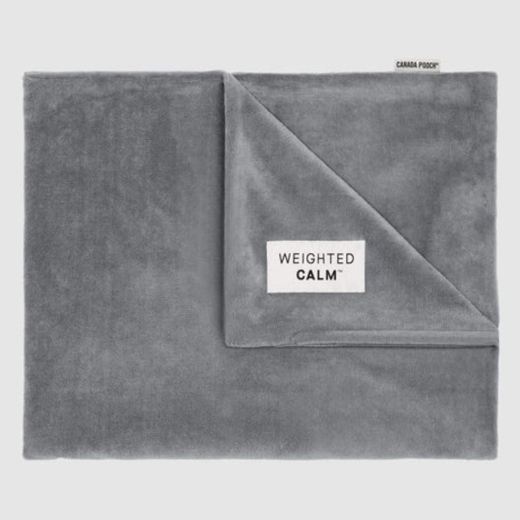The Canada Pooch weighted calming blanket offers a soothing solution for anxious dogs, using gentle pressure to create a calming effect. Made with non-toxic microbeads, the weighted calm insert evenly distributes weight across your dog's body, mimicking the sensation of being hugged or petted. Inspired by human weighted blankets, it helps reduce stress and anxiety. The ultra-plush, machine-washable cover, combined with a light lavender scent, enhances the calming experience, making it the perfect snuggle blanket for your dog to feel safe and at ease.
