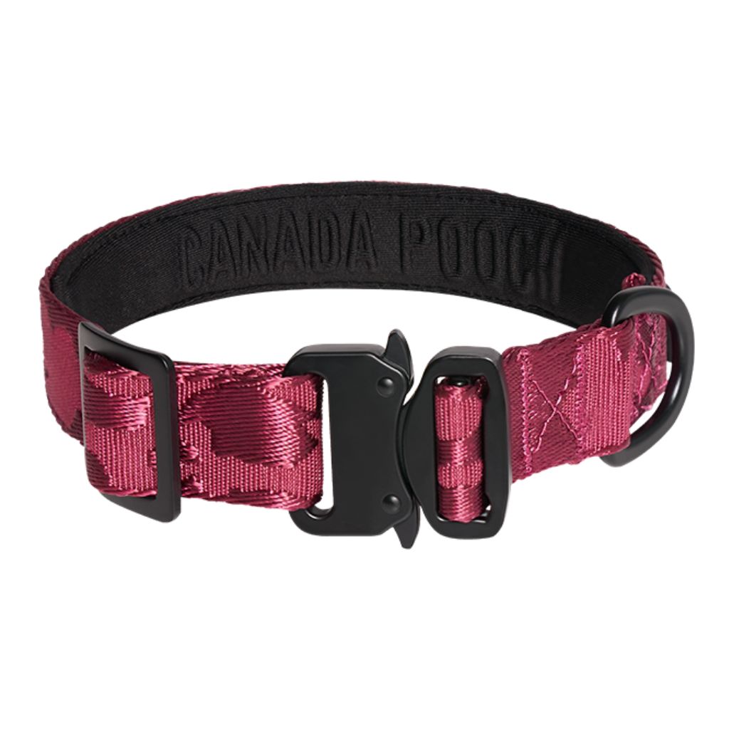 This durable collar is made with extra-strength nylon webbing and a secure metal buckle for maximum reliability. Neoprene padding ensures comfort, while rust-proof hardware adds longevity. Featuring a unique camo-stitched design, it stylishly matches the Handsfree Dog Walking Belt and Utility Leash. Spot or hand wash and hang to dry for easy care.