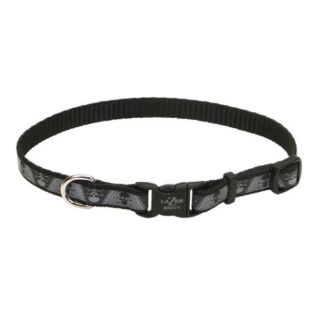 LazerBrite Reflective Adj Collar Skulls & Crossbones