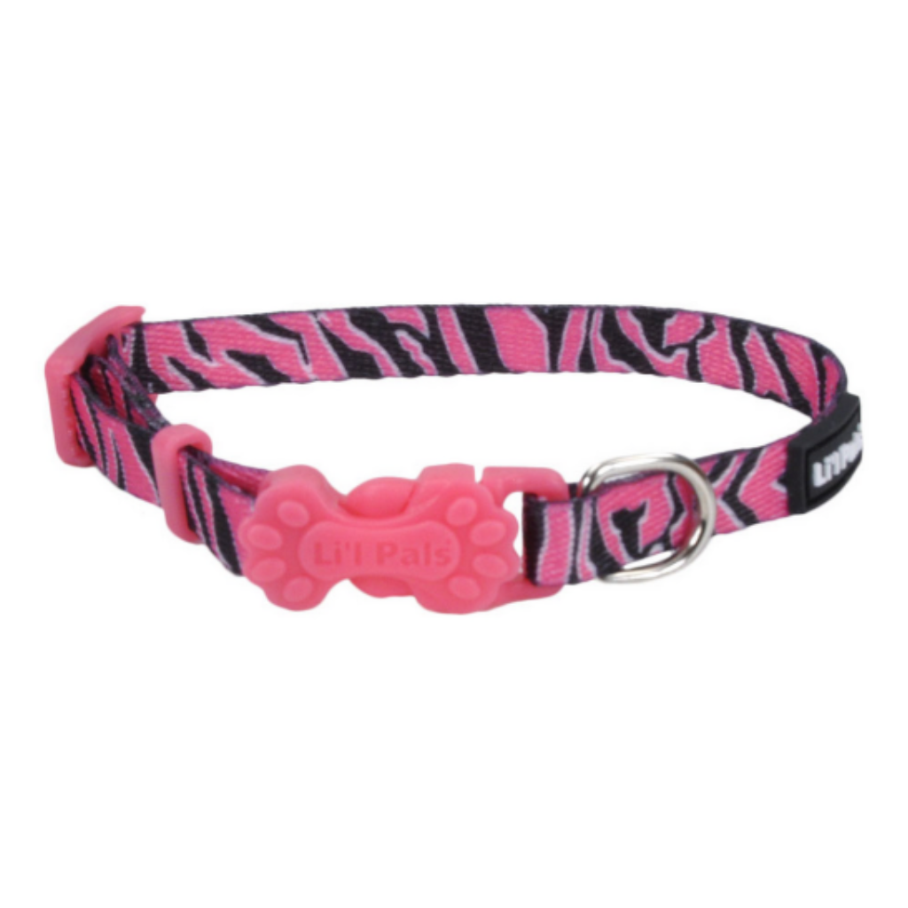 Li'l Pals Adjustable Nylon Collar Pink Zebra