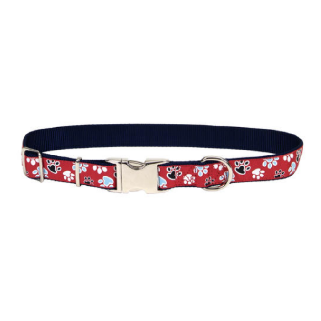Pet Attire Ribbon Collar w Buckle Red Paw