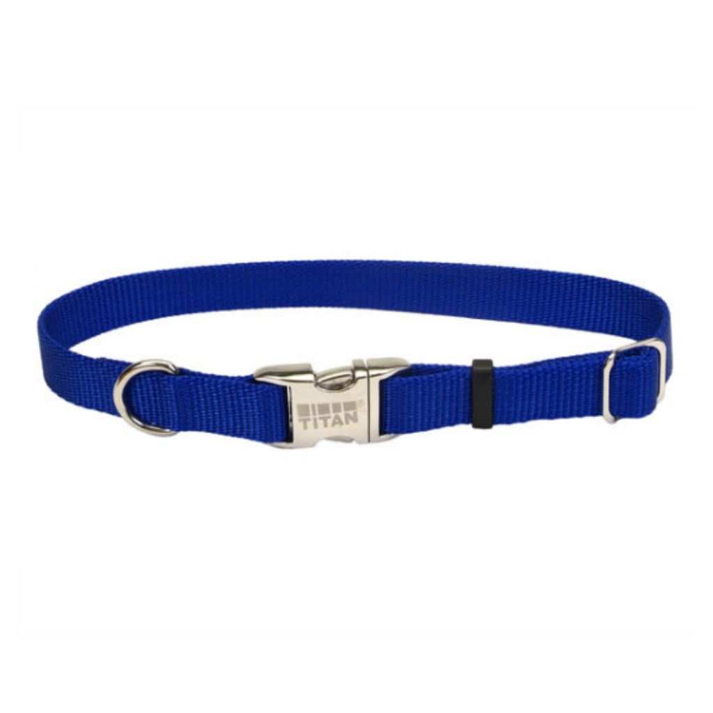 Titan Adj Nylon Collar w Buckle Blue