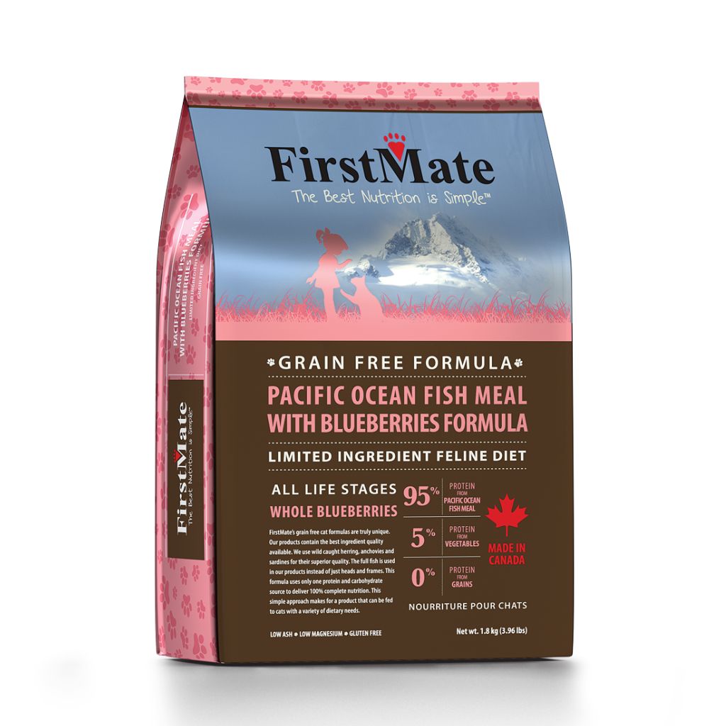 FirstMate Pacific Ocean Fish with Blueberries is a grain-free, limited-ingredient cat food ideal for all life stages. Made with wild-caught herring, anchovies, and sardines as a single protein source, it supports easy digestion and reduces allergy risks. Antioxidant-rich blueberries promote immunity, urinary health, and overall vitality. Crafted in Chilliwack, Canada, it delivers 95% protein from fish, 5% from potatoes, and 0% from grains.