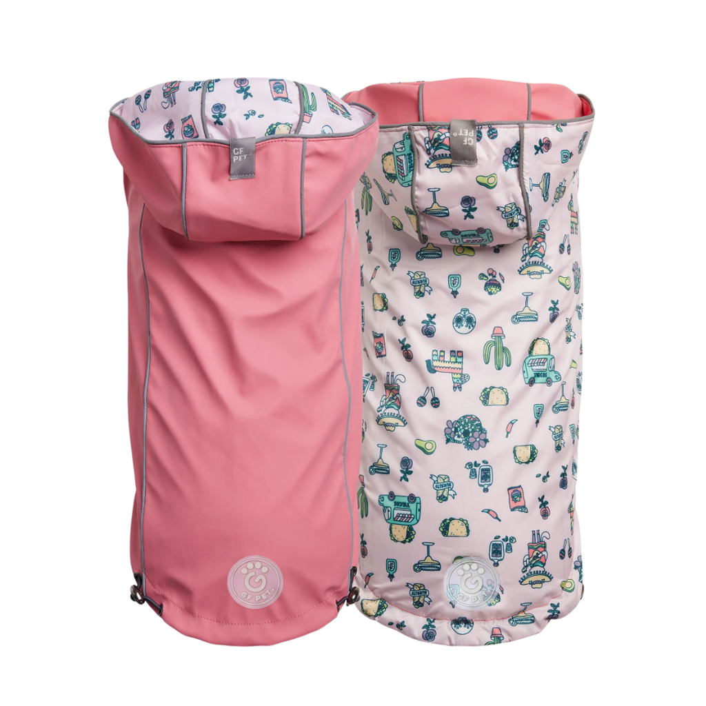 The GF PET® Reversible Raincoat is a stylish and functional must-have for any pup! Waterproof, reflective, and reversible, it features soft PU on one side and a water-resistant printed design on the other. The tackable hood offers versatility, while Elasto-Fit® Technology ensures a perfect fit. Fashion meets function for rainy-day adventures!