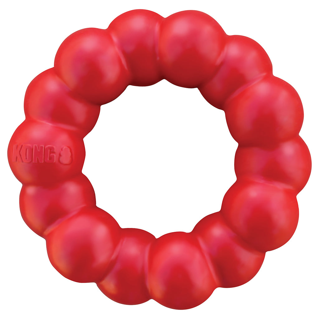 The KONG® Ring is designed for long lasting chew sessions offering enrichment and satisfying a dog’s natural instinct to chew. Made from KONG natural red rubber, the KONG Ring provides ultra-durability and added nubs to give your dog a delightful chewing experience while promoting healthy teeth and gums.