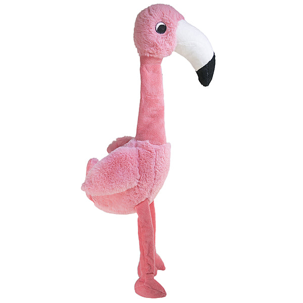 Kong Shakers Honkers Flamingo is a festive flash of pink whose internal neck features a texture that satisfies a dogs’ natural chewing instincts while the long floppy legs spark shaking and tugging playtime fun. The KONG Shakers Honkers Flamingo’s low tone squawk and the reinforced plush design keeps dogs tickled pink and playing longer.