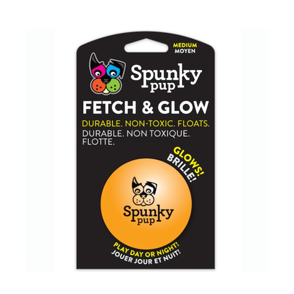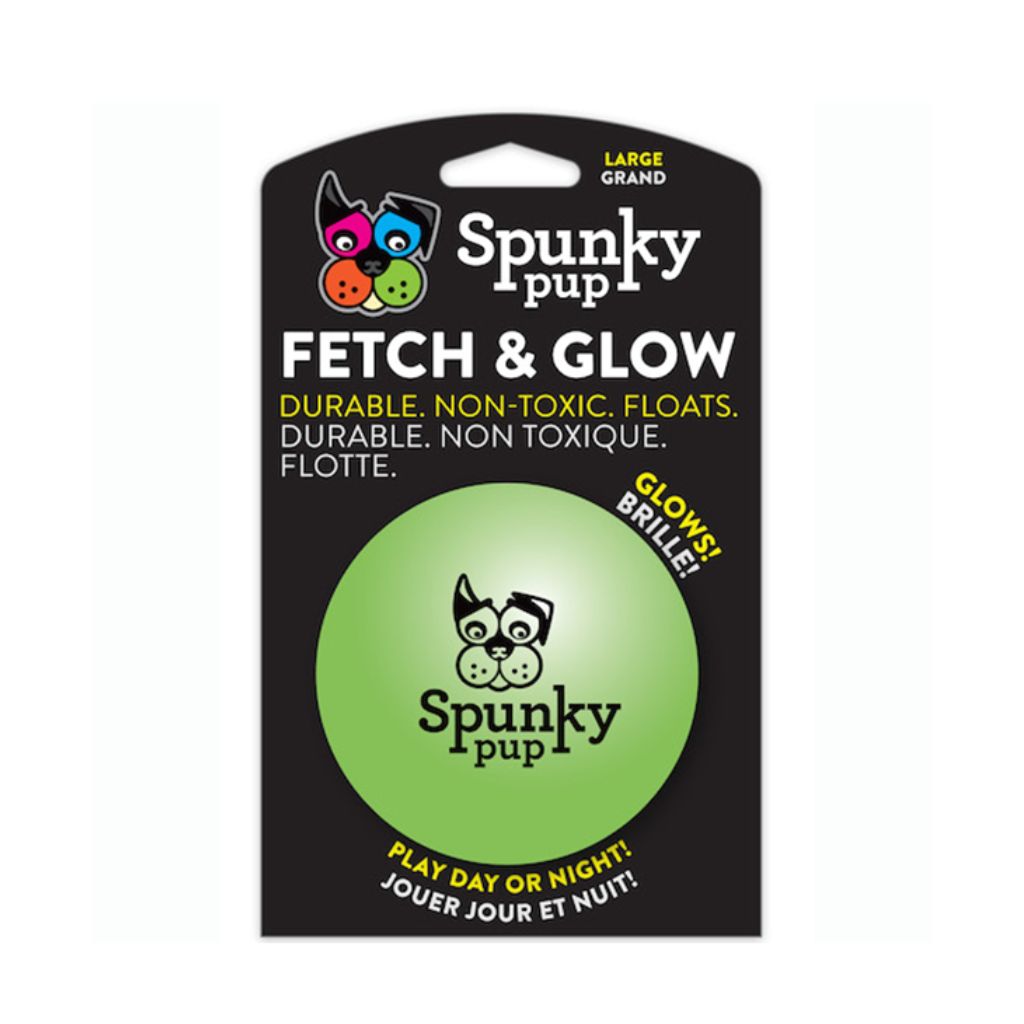 Keep the fun going with Spunky Pup's Fetch & Glow Ball! This soft, durable, and non-toxic toy glows in the dark after exposure to light. Ideal for indoor and outdoor play, it’s easy to clean, waterproof, and floats. Perfect for day or night fetch sessions in vibrant neon colors!