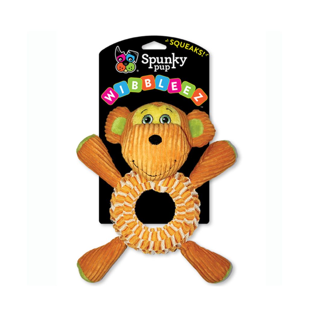 Wibbleez by Spunky Pup are the ultimate fetch and tug toys! With strong, stretchy nylon webbing woven into cuddly plush, these toys squeak and entertain as your dog plays.