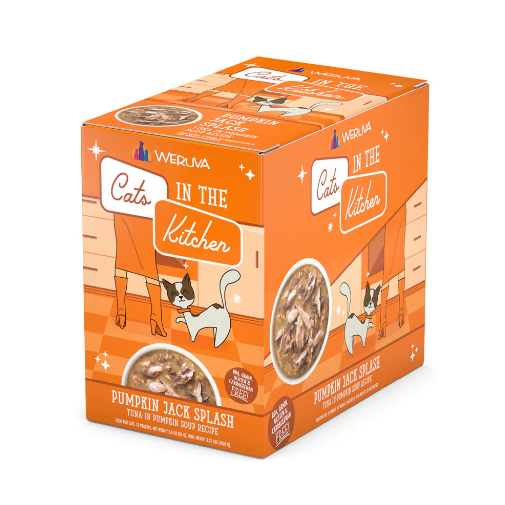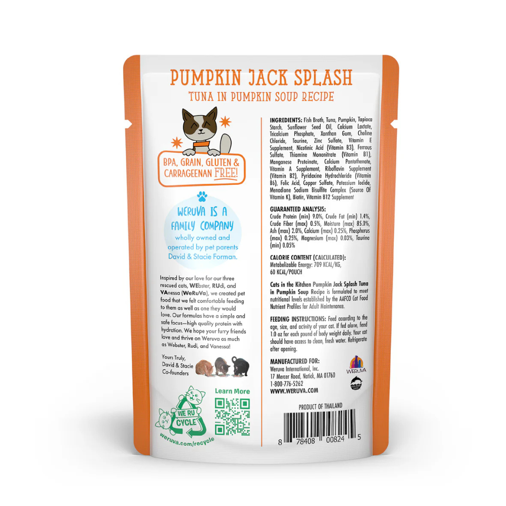 Pumpkin Jack Splash in Pumpkin Soup features wild-caught tuna in a tasty pumpkin soup. This recipe is grain-free, gluten-free, BPA-free, and carrageenan-free. Recycle used pouches with WeRuCycle for eco-friendly disposal.